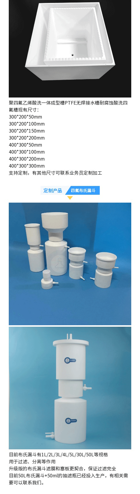 公司新聞 四氟大桶槽酸洗一體成型槽PTFE無焊接水槽 更新時間 2021-10-13 12:55:08 閱讀 1563 上一篇:氟化氫過濾裝置-四氟布氏漏斗 下一篇:推出半導(dǎo)體級專用標(biāo)準(zhǔn)參考物質(zhì)容器——PFA試劑瓶